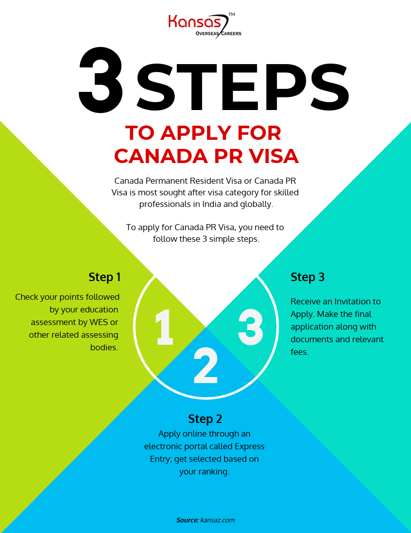 To apply for Canada PR visa, you need to follow 3 simple steps as shown in this infographic.