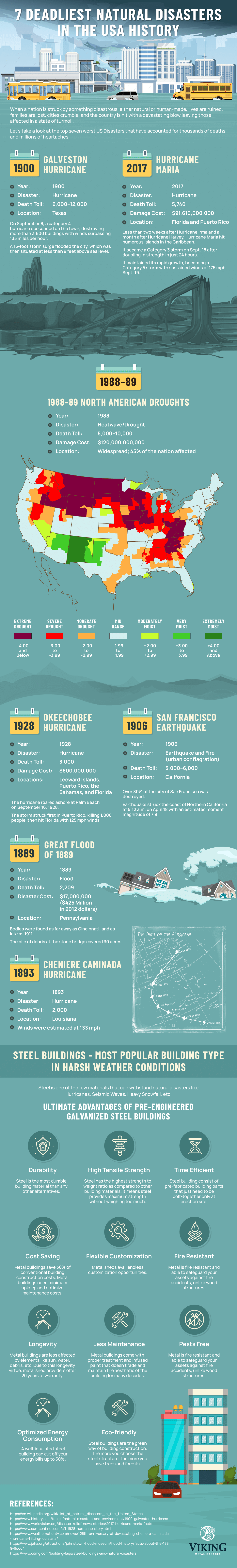 There are many more natural disasters that keep invading the US. For more details about the 7 deadliest natural disasters in US history, you can check the infographic.
