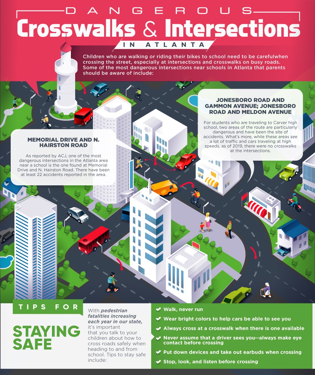 Children especially, need to be very cautious of busy intersections especially when they are on their way to school or coming home from school as these are some of the busiest and dangerous intersections in Atlanta.