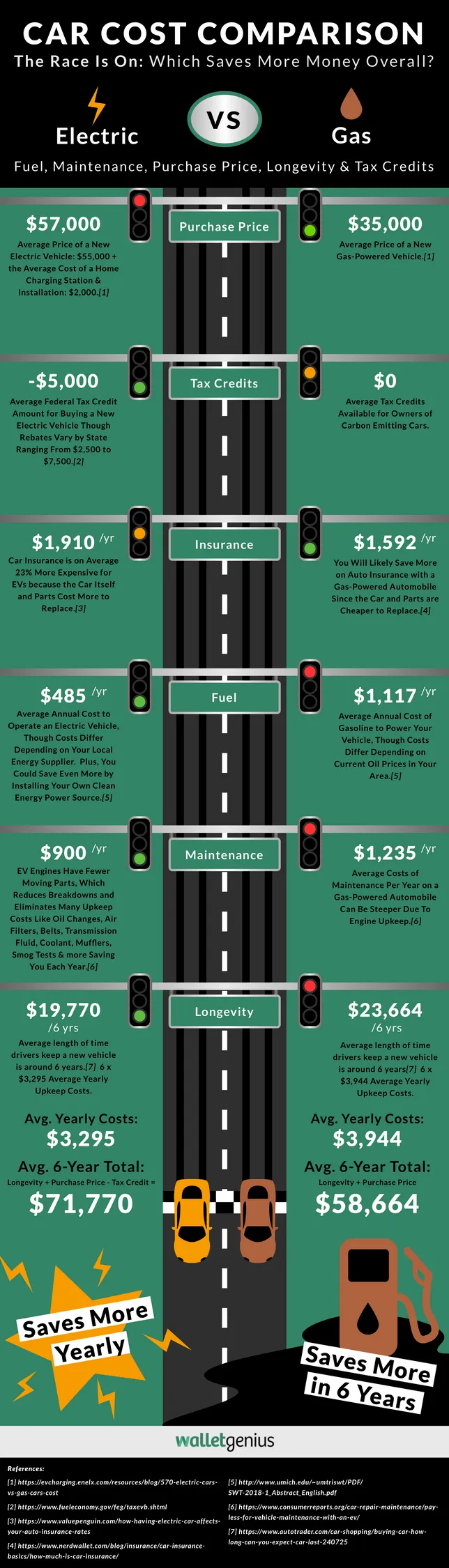 With so many signs pointing to the future of driving being electric, WalletGenius dug in and looked at all the costs associated with vehicle ownership of electric vs gas cars. Governments are building charging stations nationwide and offering tax credits up to $7,500 for purchasing a new EV.
