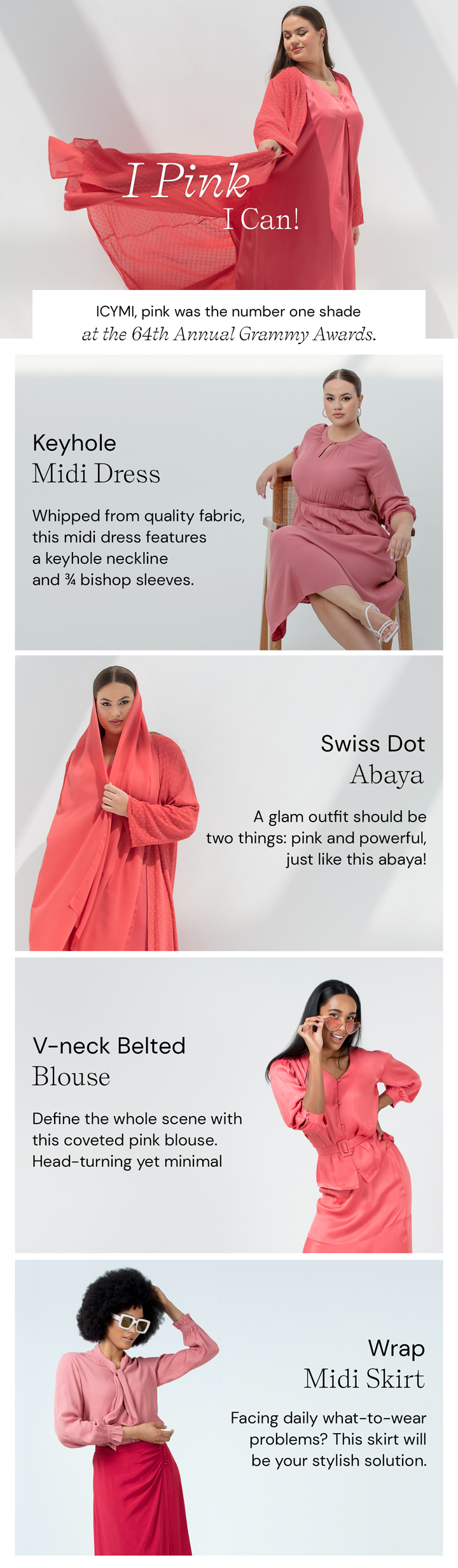 “I Pink I Can”: Kayfi’s Pink Fashion Extravaganza! Step into a world of pink perfection inspired by the 64th Annual Grammy Awards with Kayfi’s delightful collection.