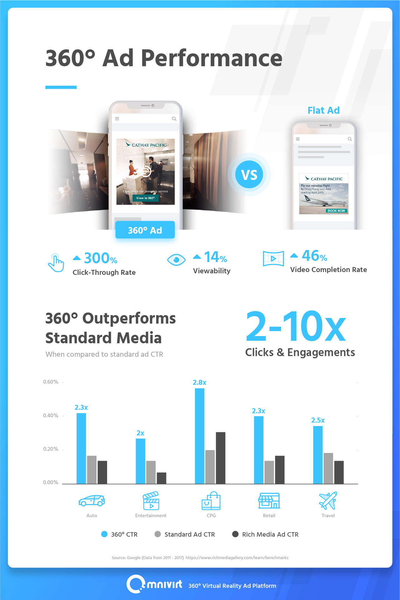 360° ads can get up to 300% the CTR compared to standard ads. They have 14% higher viewability and 46% higher video completion rate.